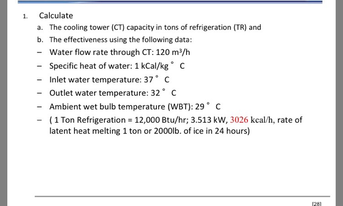Solved Calculate The Cooling Tower Ct Capacity In Tons Of Chegg Com